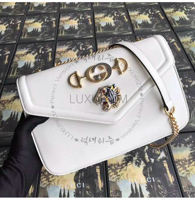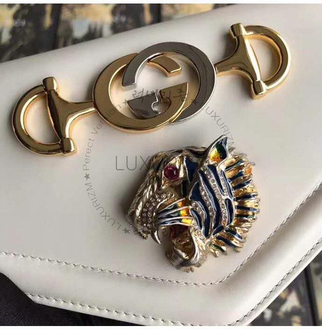 [스페셜오더]GUCCI-537241 9084 구찌 화이트 가죽 타이거 헤드 디테일 미디엄 숄더백