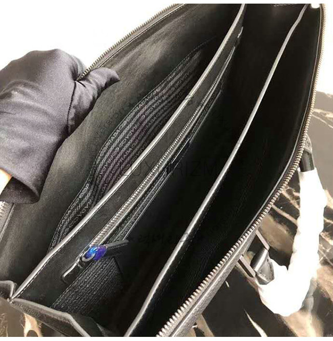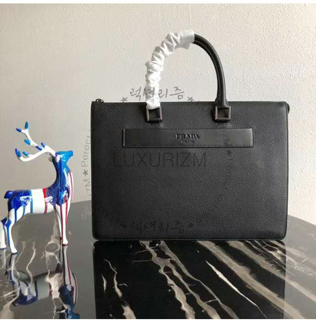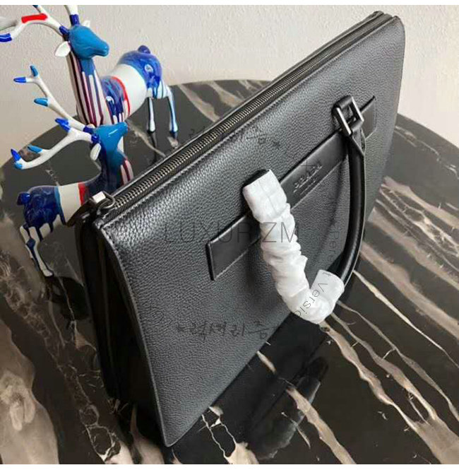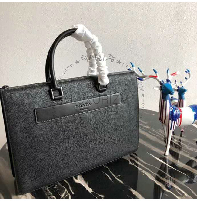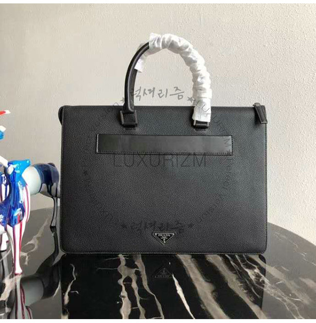 [스페셜오더]PRADA-2VG041 프라다 블랙 송아지 가죽 엠보싱 레터링 로고 브리프케이스