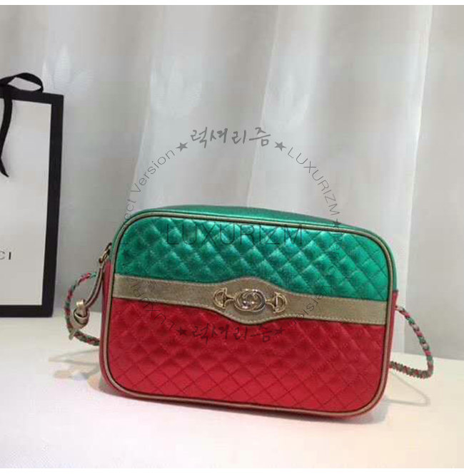 [스페셜오더]GUCCI-541061 3862 구찌 그린 레드 라미네이트 가죽 스몰 숄더백
