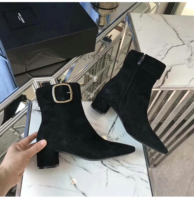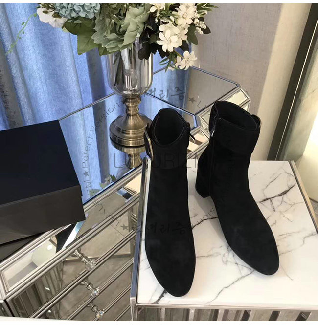 SAINT LAURENT-532031 생 로랑 블랙 스웨이드 송아지 가죽 조플린 50 앵클 부츠