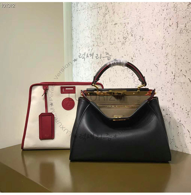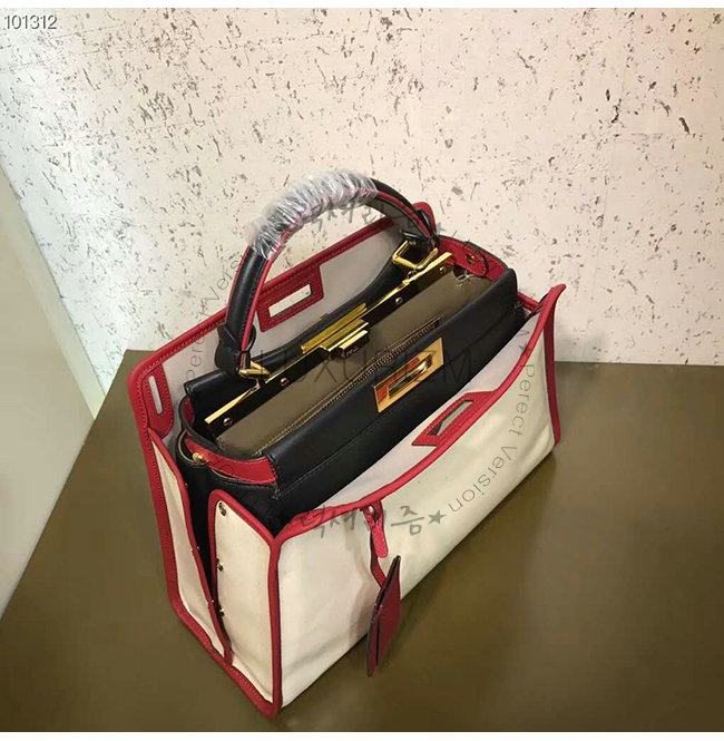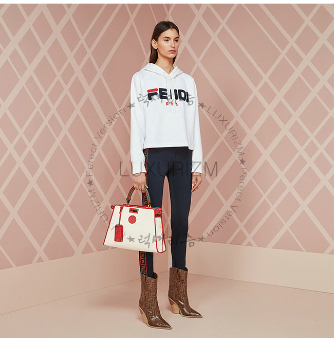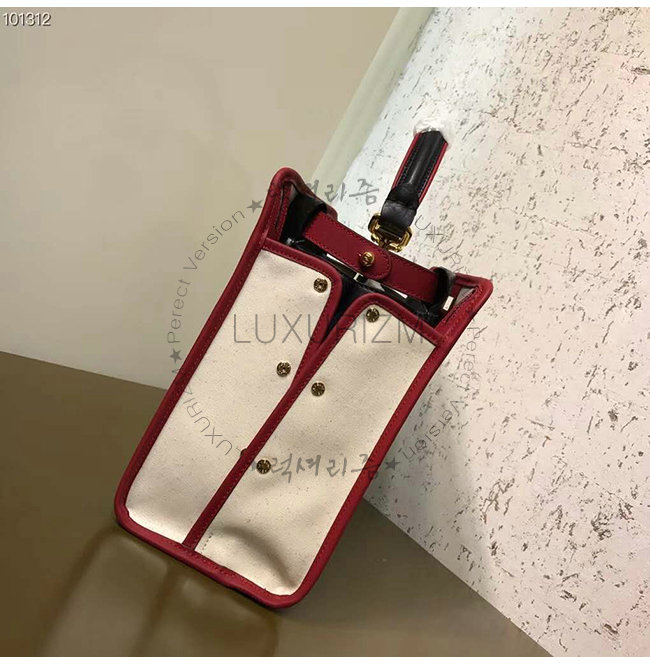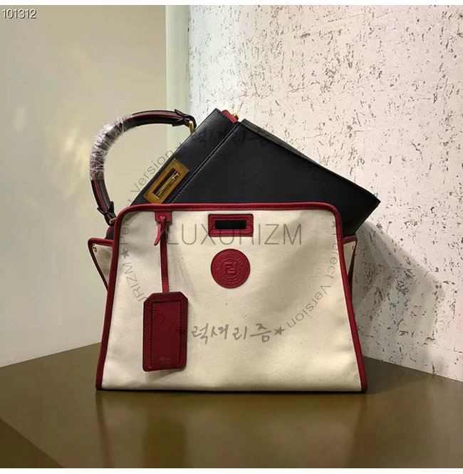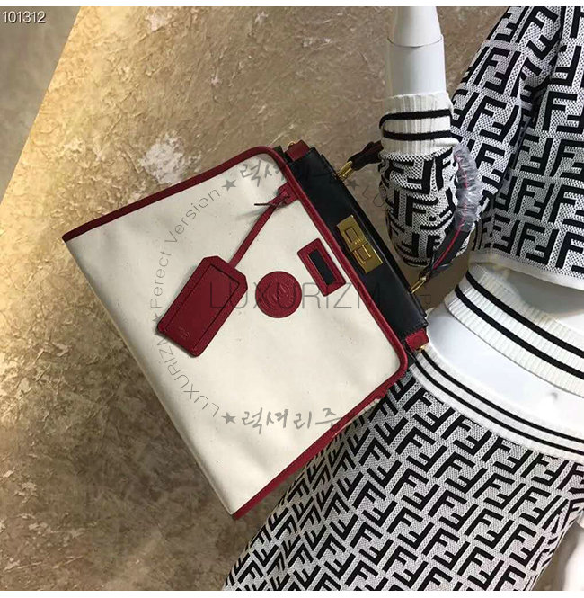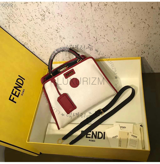 [스페셜오더]FENDI-8BN307 펜디 화이트 글레이즈드 패브릭 레드 가죽 트리밍 피카부 디펜더