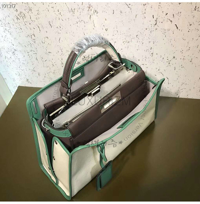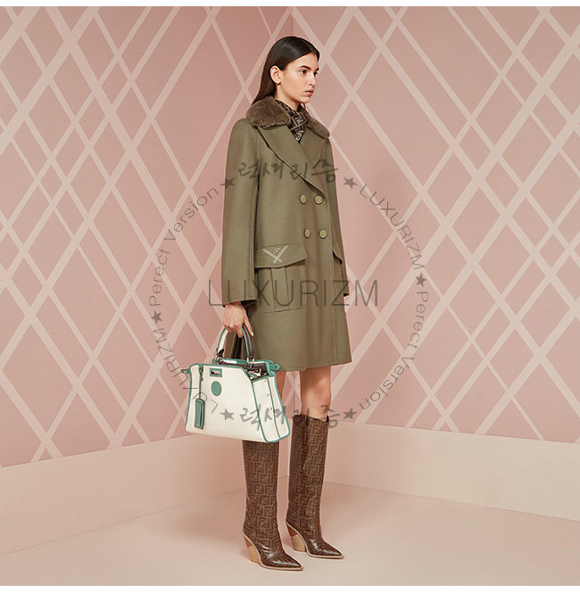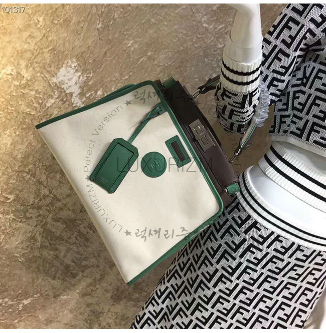 [스페셜오더]FENDI-8BN307 펜디 화이트 글레이즈드 패브릭 그린 가죽 트리밍 피카부 디펜더