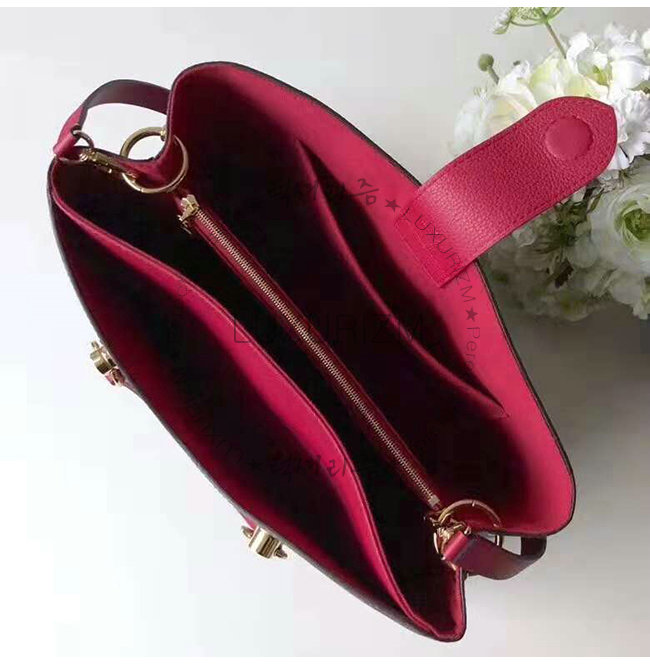 이번 토트백은 풍성한 디테일을 자랑합니다.골드마감의 금속 디테일이 가미된 손잡이는