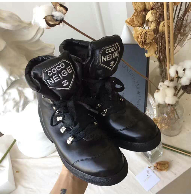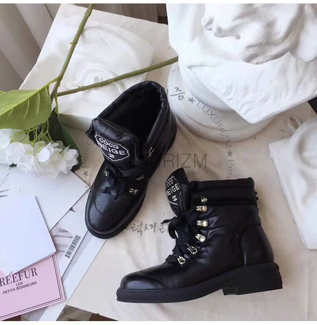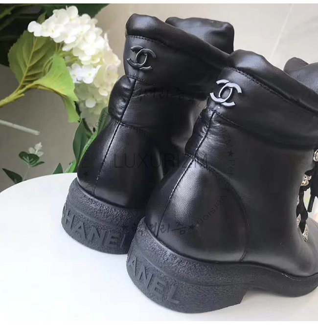 CHANEL-G34083 샤넬 블랙 램스킨 쇼트 부츠