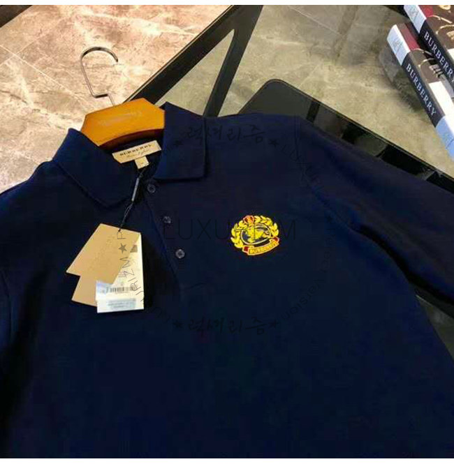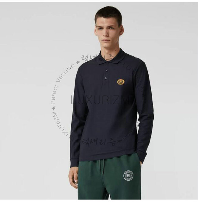 [스페셜오더]BURBERRY-80036001 버버리 네이비 코튼 롱 슬리브 아카이브 로고 피케 폴로 셔츠