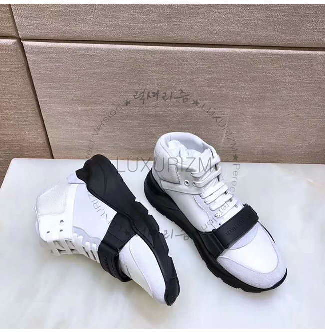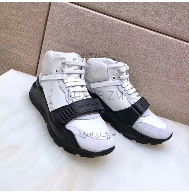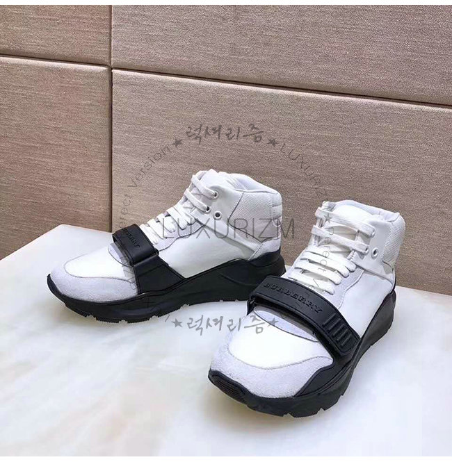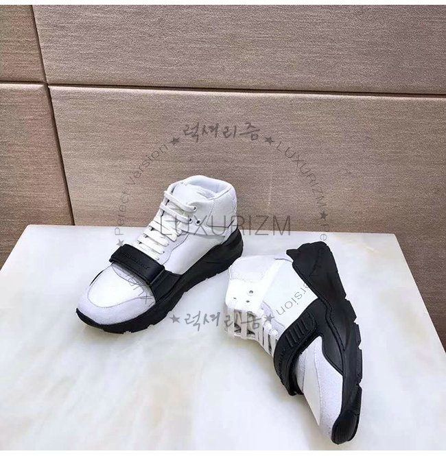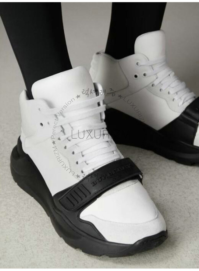 BURBERRY-40785601 버버리 화이트 블랙 스웨이드 네오프렌 하이톱 스니커즈