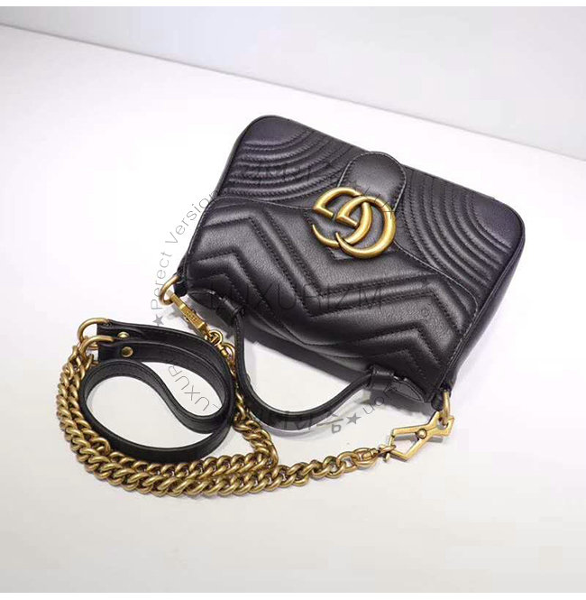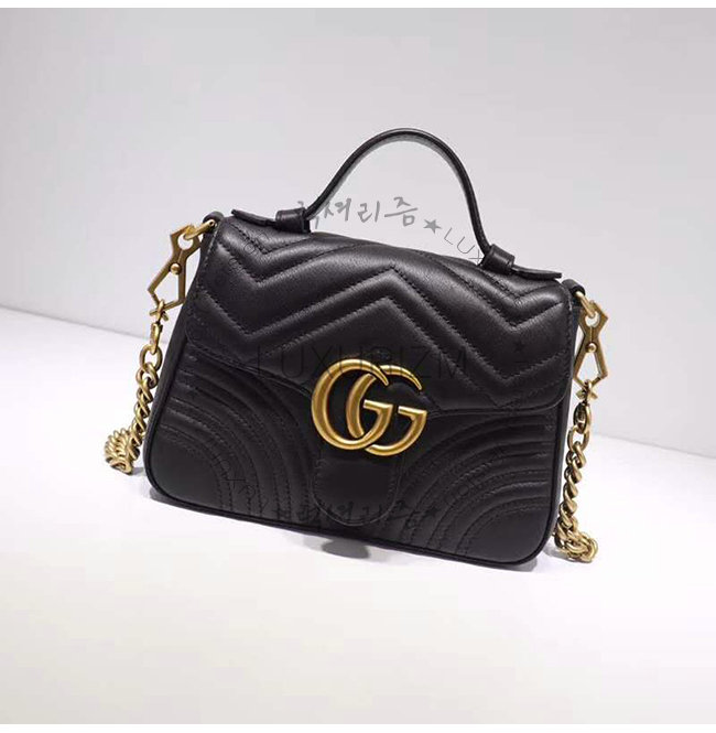 [스페셜오더]GUCCI-547260 1000 구찌 GG 마몽 블랙 마틀라세 쉐브론 가죽 미니 탑 핸들백