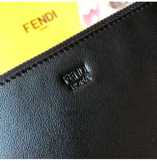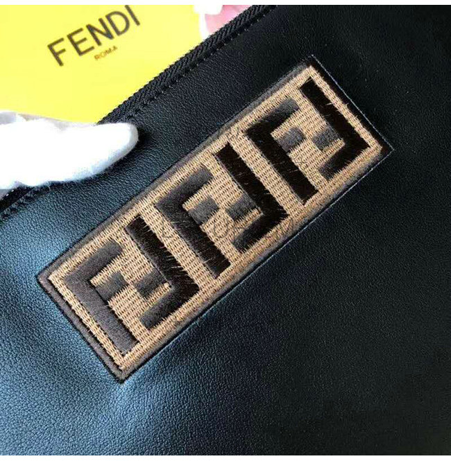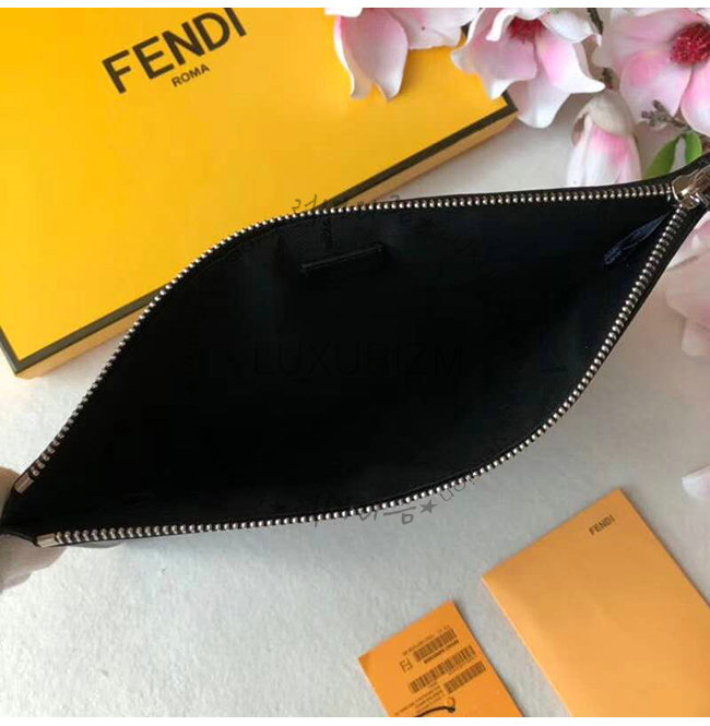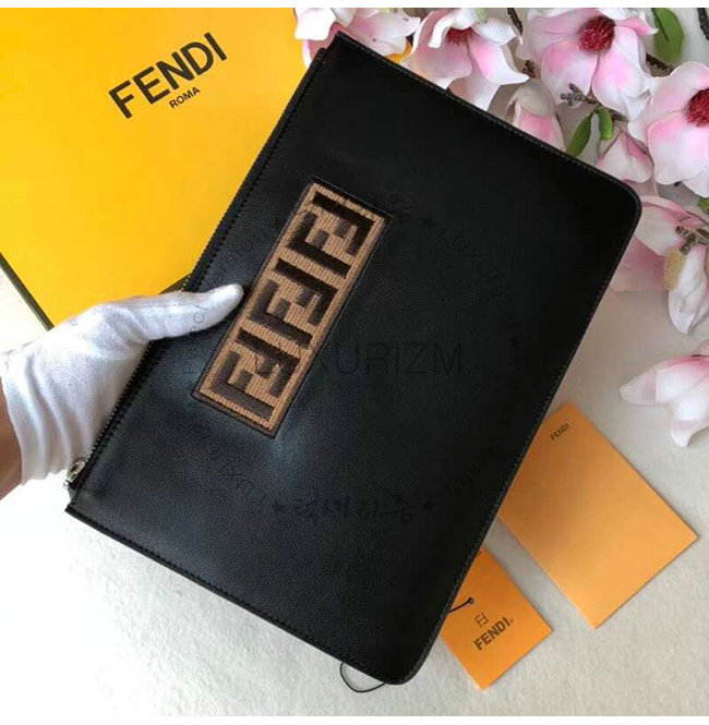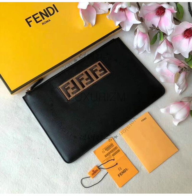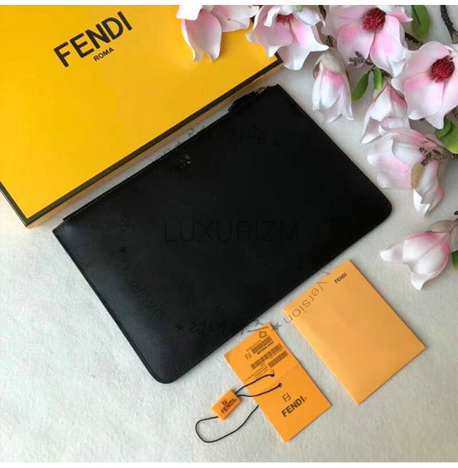 FENDI-7N0078 펜디 블랙 송아지 가죽 FF 자수 파우치