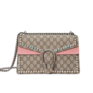 [스페셜오더]GUCCI-400249 8357 구찌 GG 수프림 크리스탈 트리밍 스몰 체인 숄더백 핑크