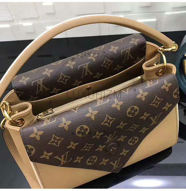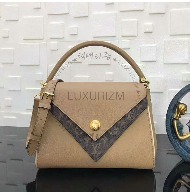모노그램 캔버스의 조화가 돋보입니다.곡선을 이루는 부드러운 실루엣이 대담한 V모양 덮개와