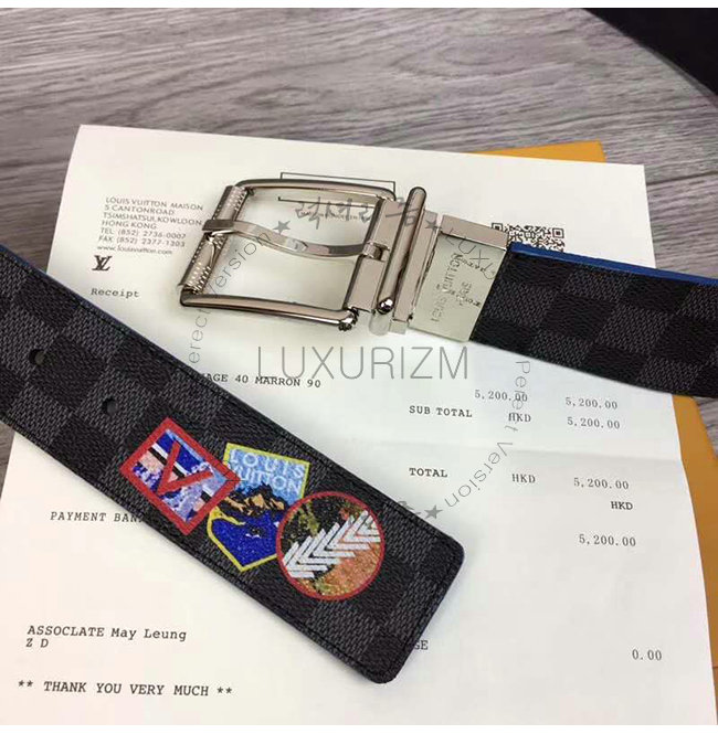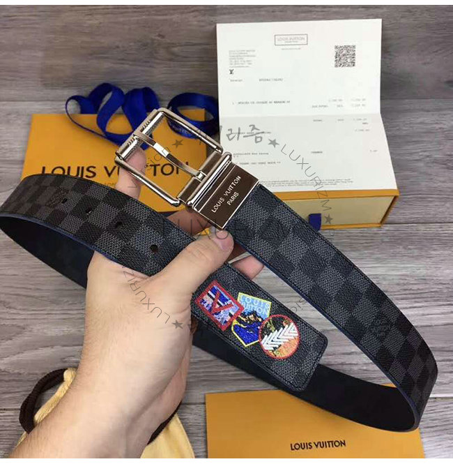 [스페셜오더]LOUIS VUITTON-M0077S 루이비통 다미에 그라파이트 프린트 장식 리버서블 벨트 40MM