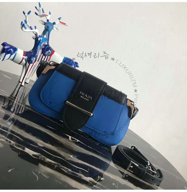 [스페셜오더]PRADA-1BD168 프라다 블루 송아지 가죽 Sidonie 플랩 숄더백