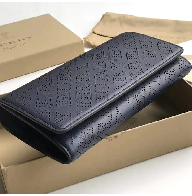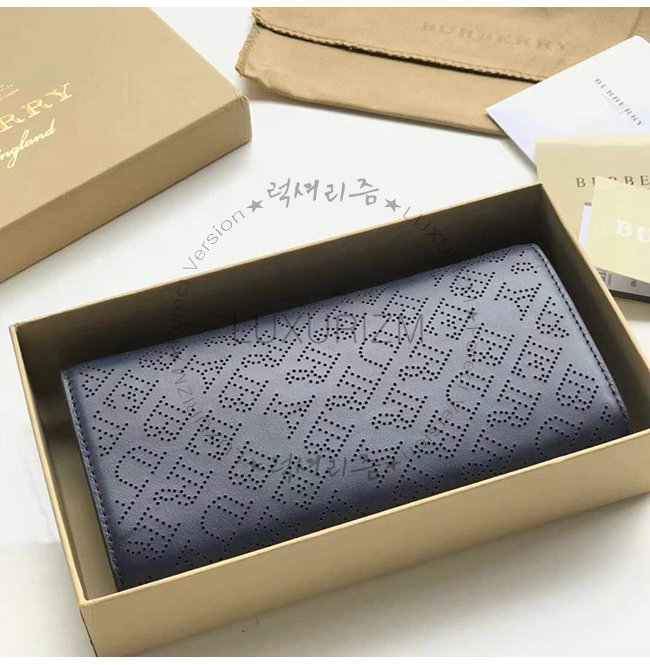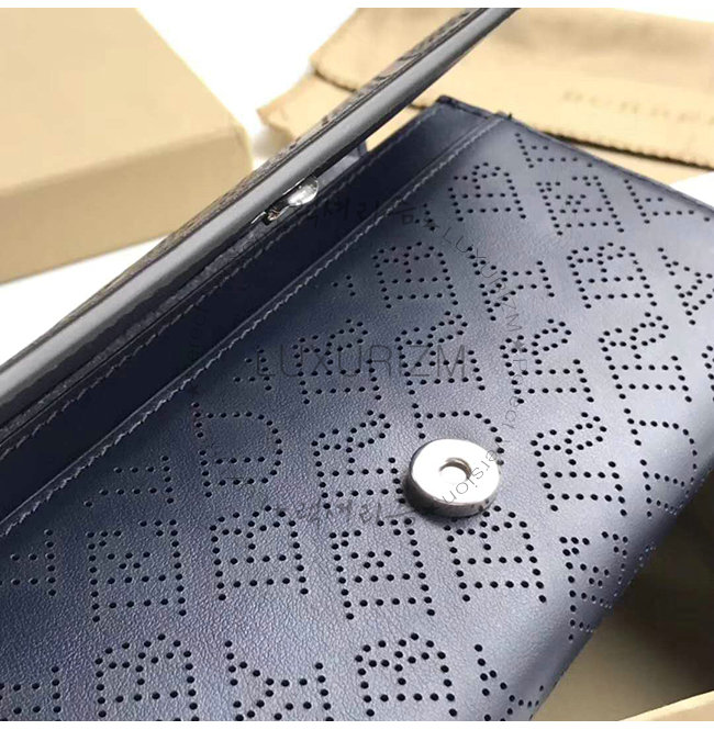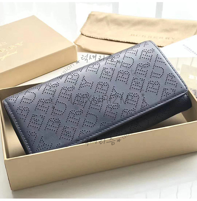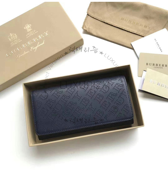 [스페셜오더]BURBERRY-40789561 버버리 네이비 송아지 가죽 퍼포레이트 로고 지갑
