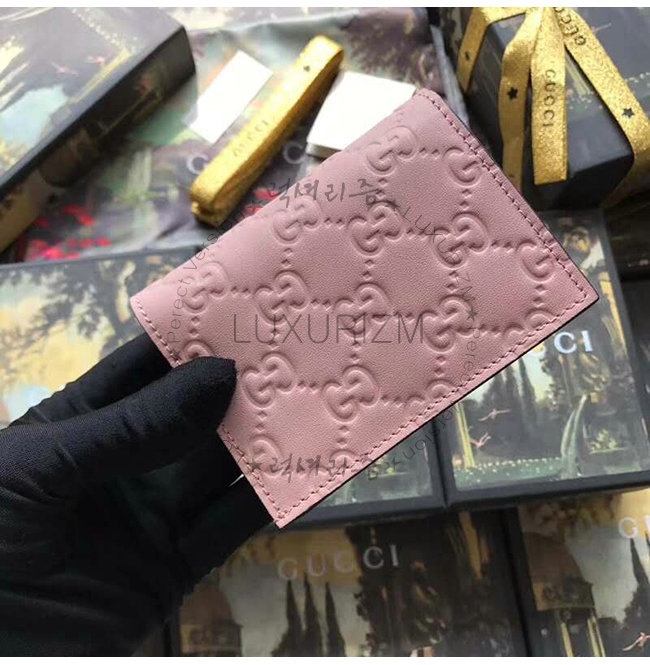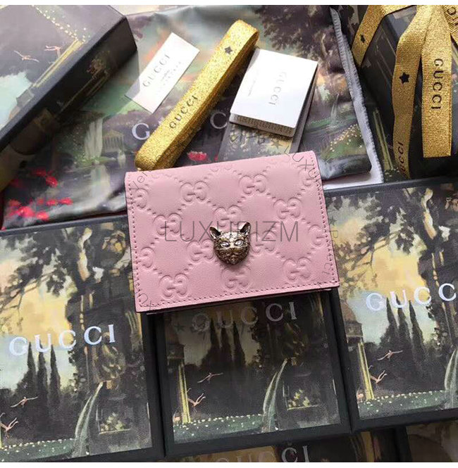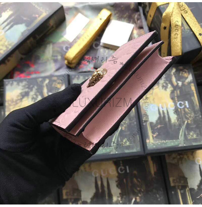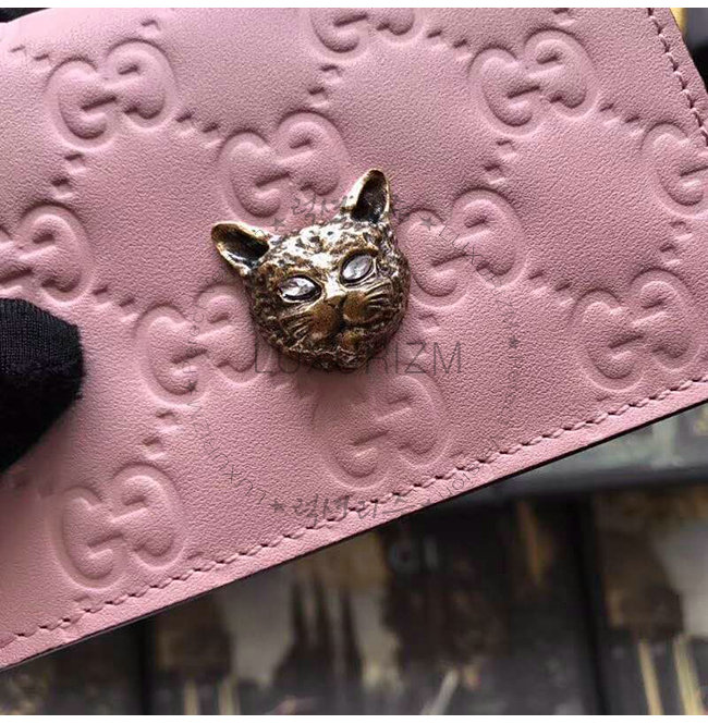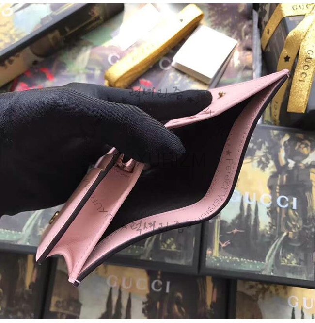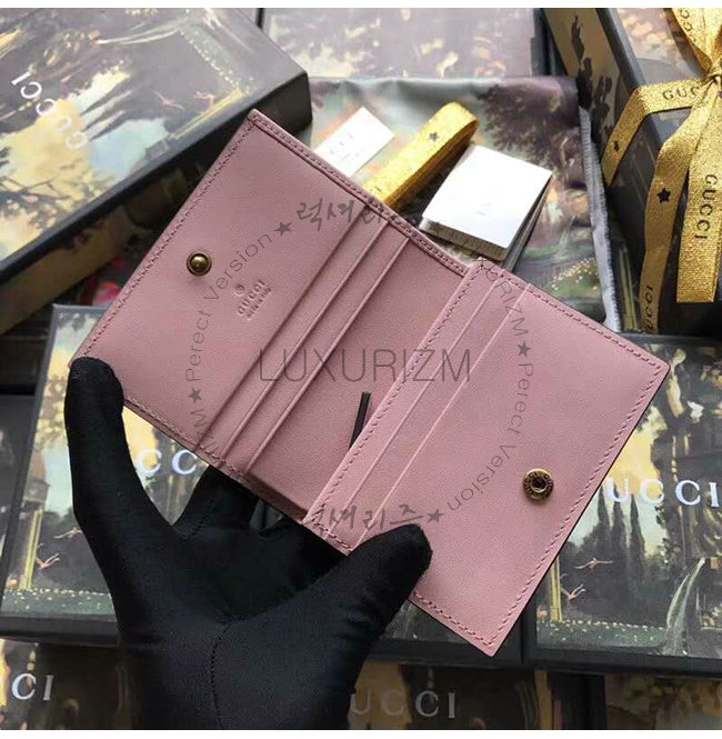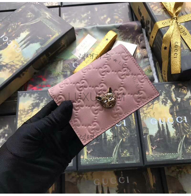 [스페셜오더]GUCCI-548057 5877 구찌 핑크 Gucci 시그니처 가죽 캣 장식 카드 케이스