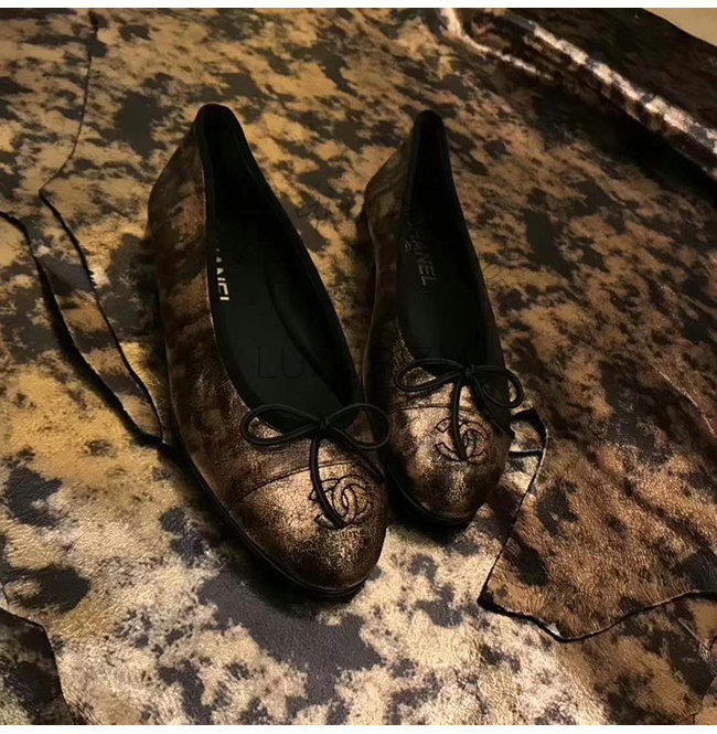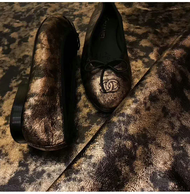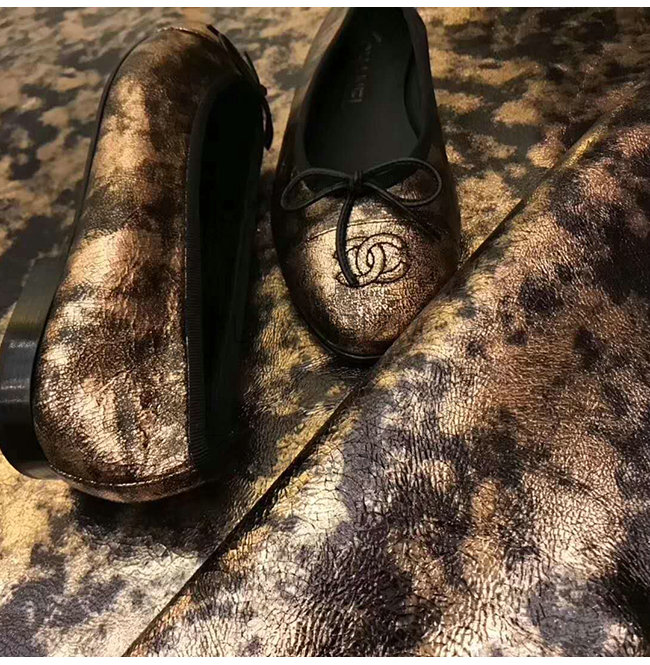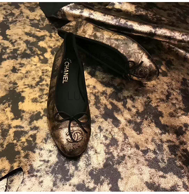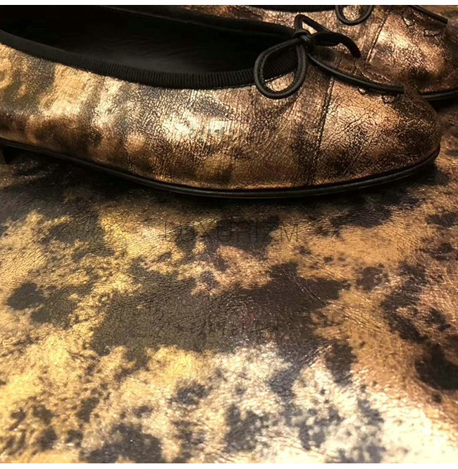 CHANEL-G02819 샤넬 골드 라미네이티드 스웨이드 고트스킨 플랫