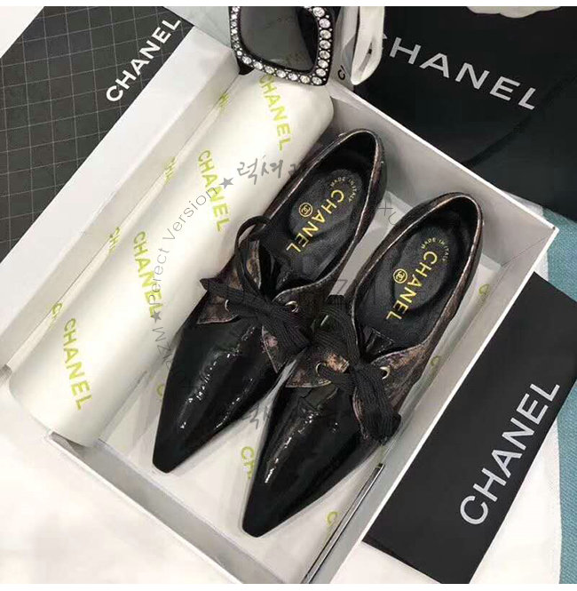 CHANEL-G34275 샤넬 블랙 페이턴트 카프스킨 레이스업
