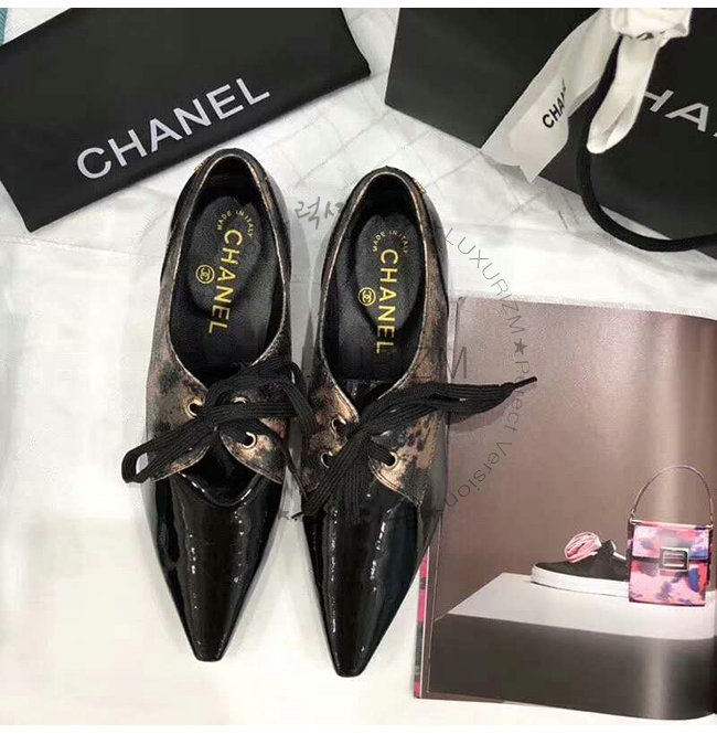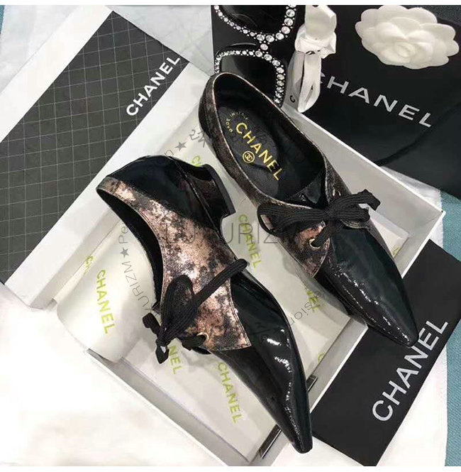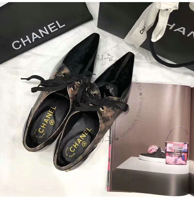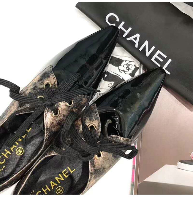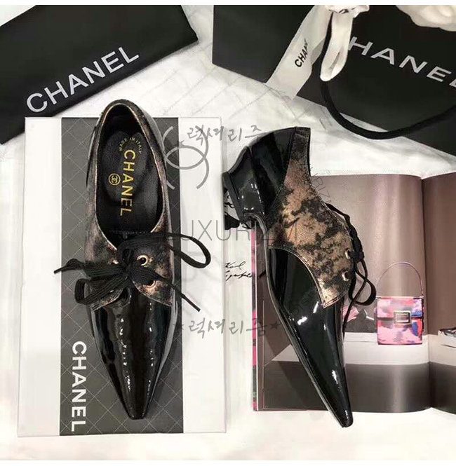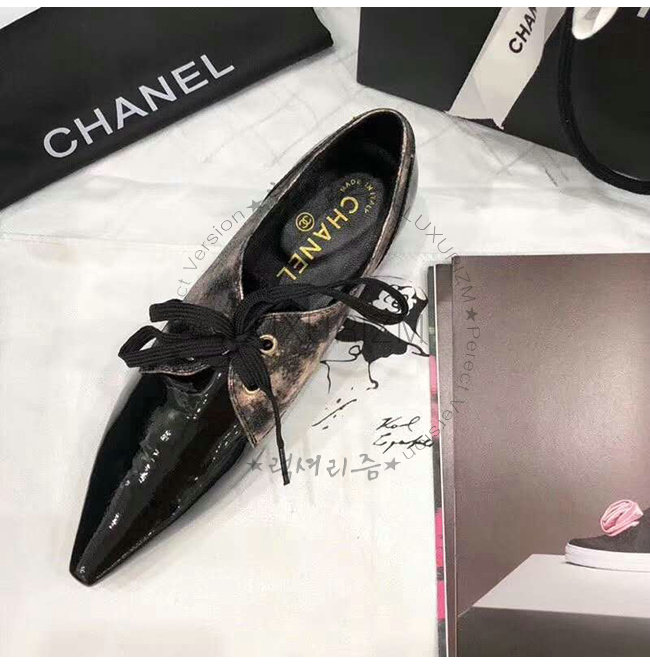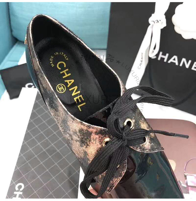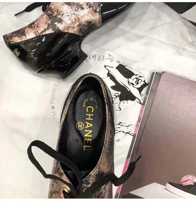 CHANEL-G34275 샤넬 브론즈 블랙 라미네이티드 고트스킨 페이턴트 카프스킨 레이스업