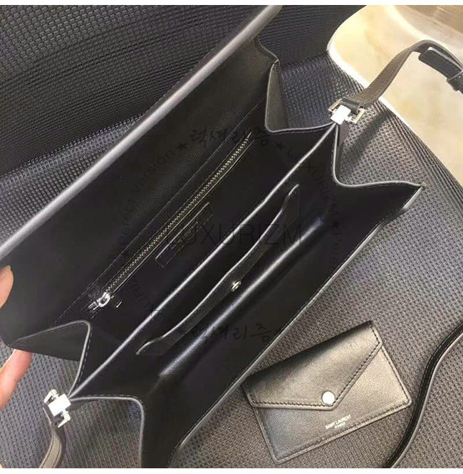 양각으로 새겨진 생 로랑 시그니처, 길이 조절 가능한 스트랩, 플랩 클로저의
