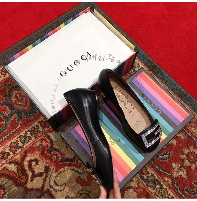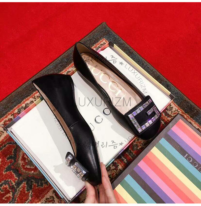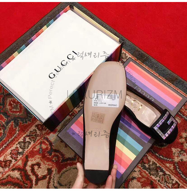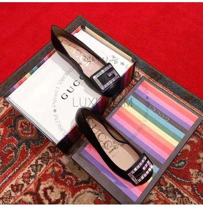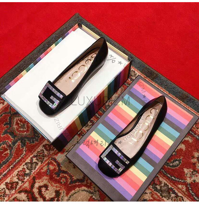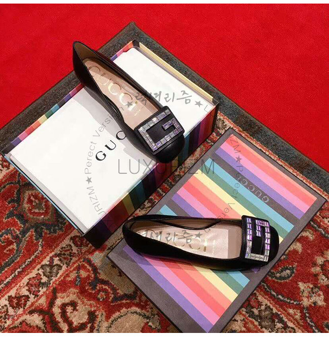 GUCCI-551434 1000 구찌 마들린 블랙 가죽 크리스털 G 디테일 발레 플랫