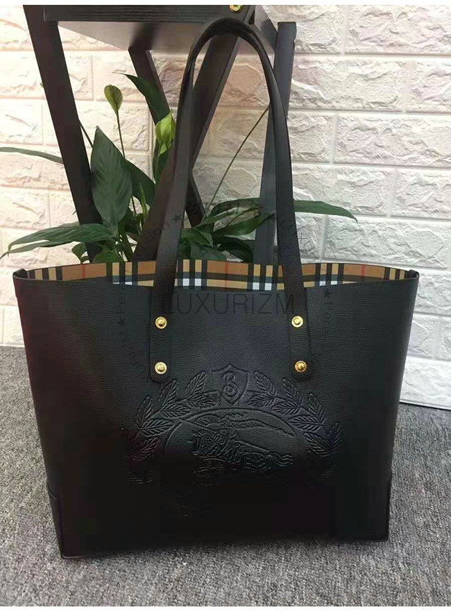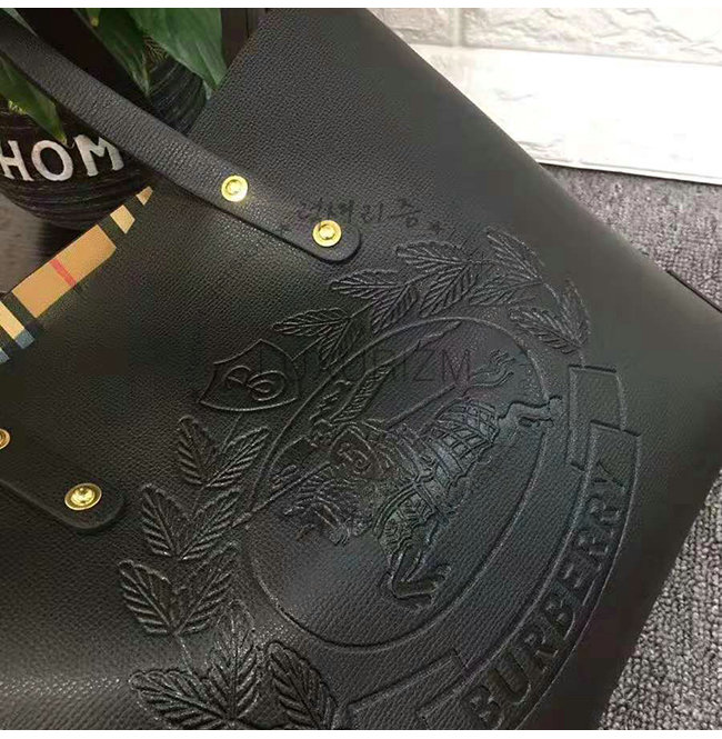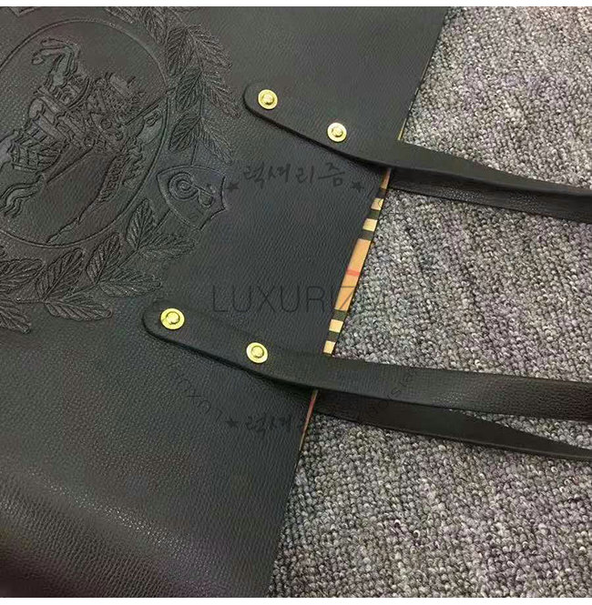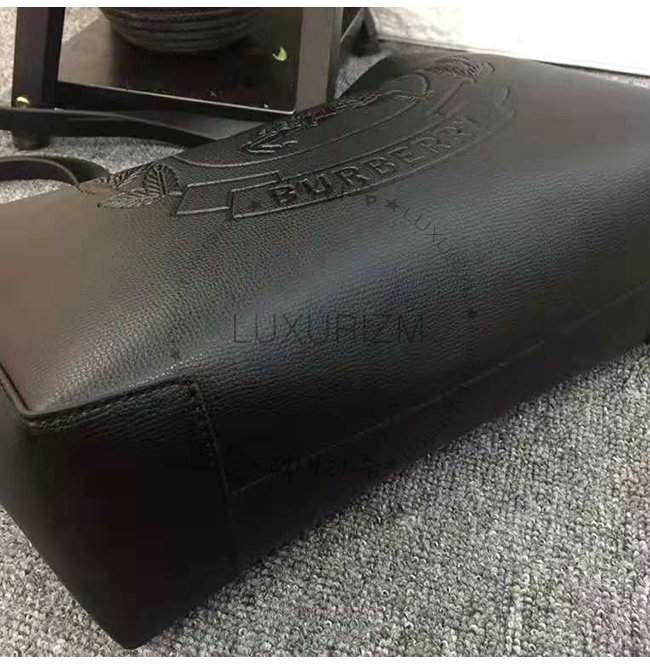 BURBERRY-40801091 버버리 블랙 송아지 가죽 스몰 엠보싱 크레스트 토트