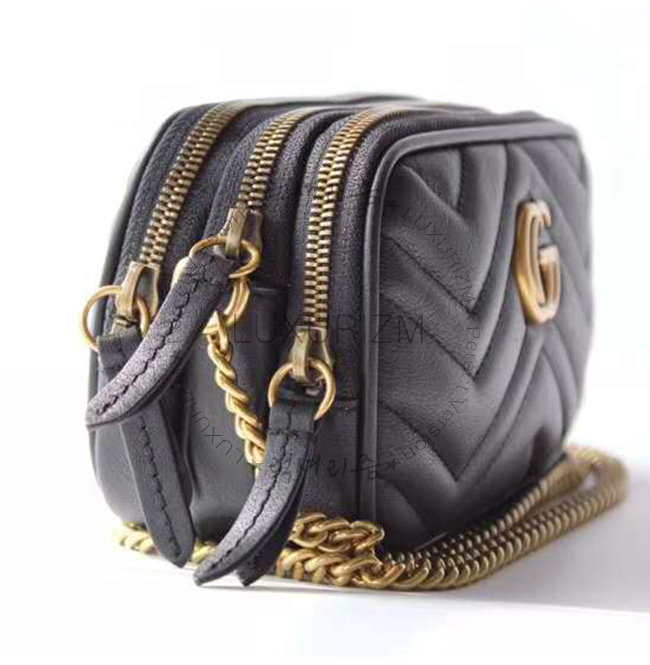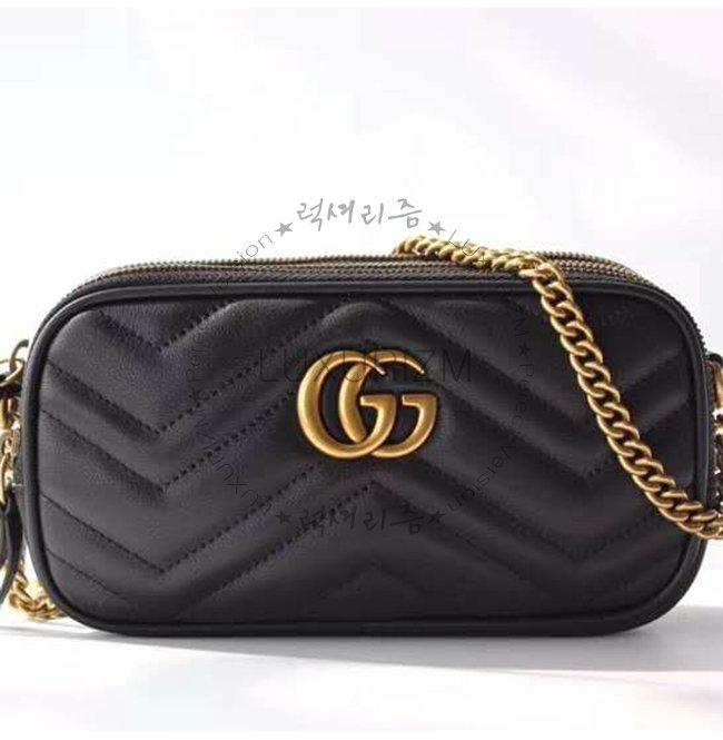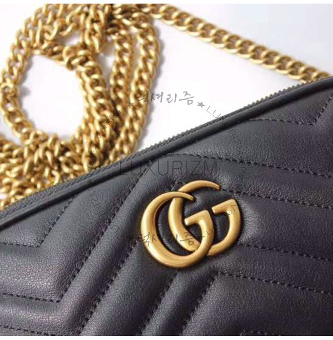 [스페셜오더]GUCCI-546581 1000 구찌 GG 마몽 블랙 마틀라세 쉐브론 가죽 미니 체인백
