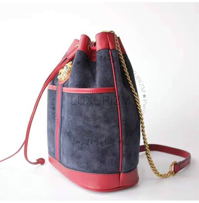 [스페셜오더]GUCCI-553961 4065 구찌 블루 스웨이드 가죽 미디업 버켓백