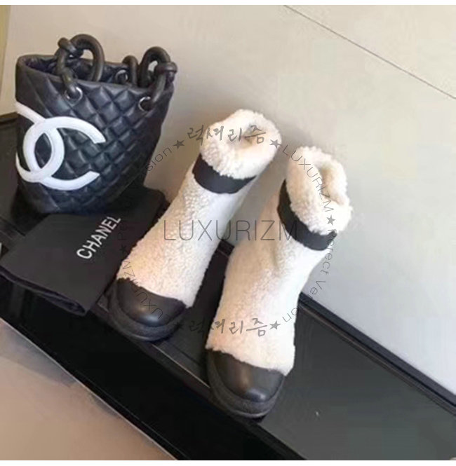 CHANEL-G34081 샤넬 시어링 카프스킨 쇼트 부츠