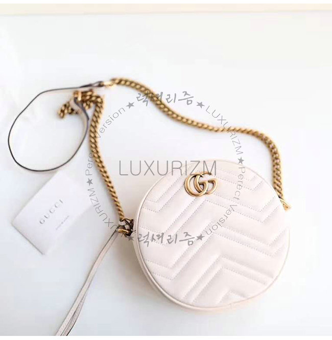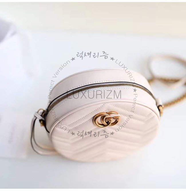 [스페셜오더]GUCCI-550154 9022 구찌 GG 마몽 화이트 마틀라세 쉐브론 가죽 미니 라운드 숄더백