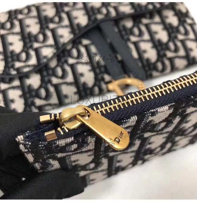 [스페셜오더]DIOR-S5614 디올 블루 Dior Oblique 자카드 패브릭 SADDLE 새들지갑