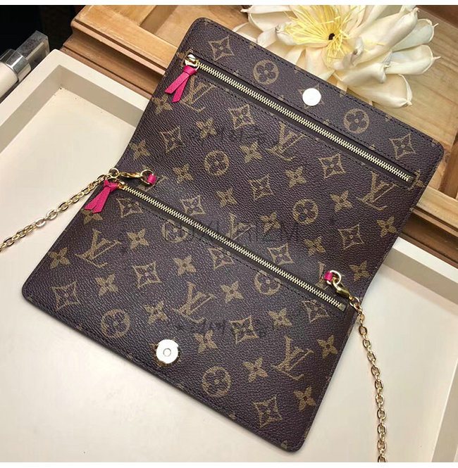 모노그램 캔버스 포쉐트 위크엔드 클러치를 소개합니다. 분리 가능한 체인으로 어깨에 걸칠수있는