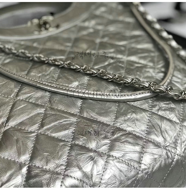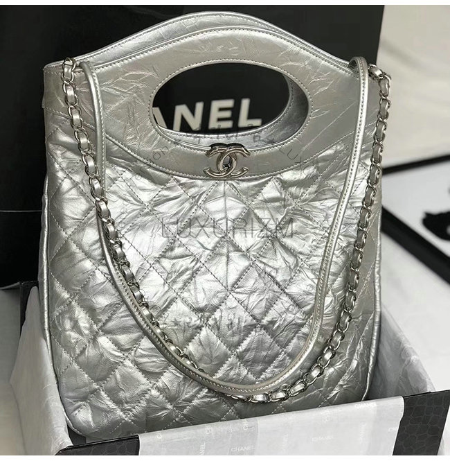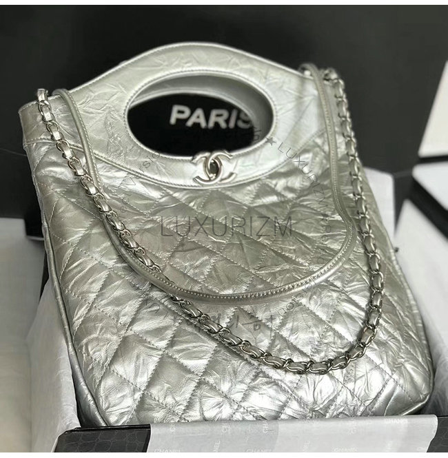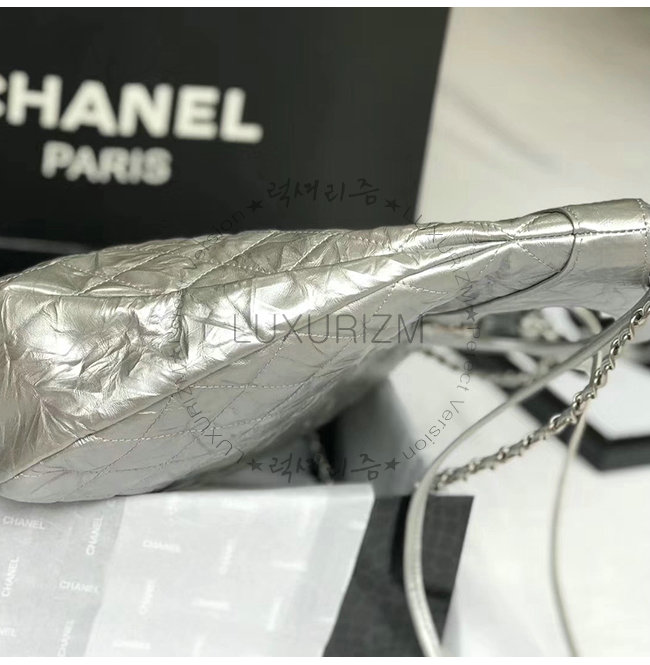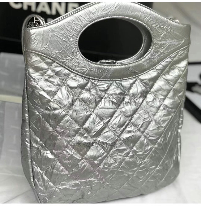 [스페셜오더]CHANEL-AS0091 샤넬 실버 메탈릭 크럼플드 카프스킨 실버메탈 CHANEL 31 스몰 쇼핑백