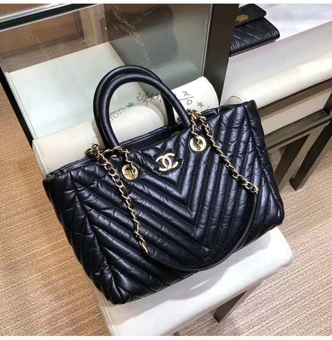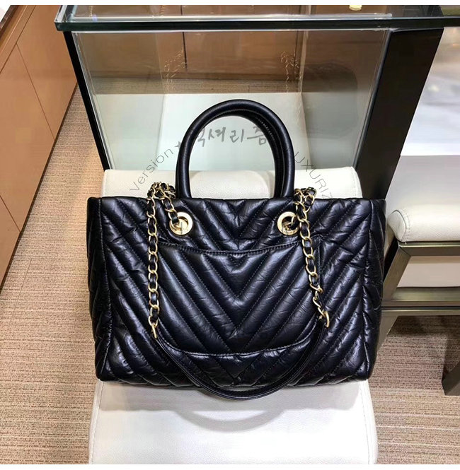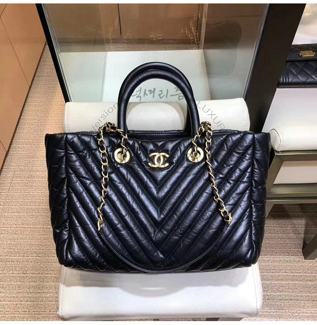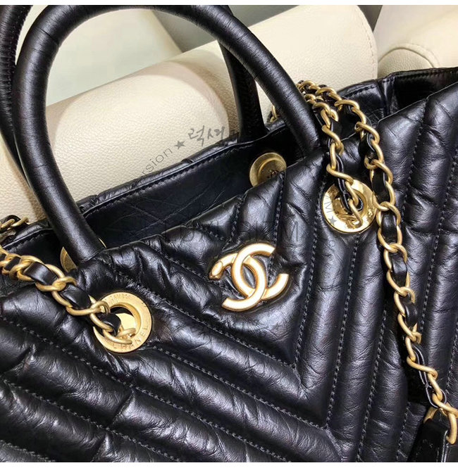 [스페셜오더]CHANEL-A57974 샤넬 블랙 빈티지 카프스킨 골드메탈 라지 토트백