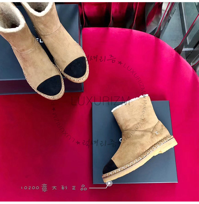 [스페셜오더]CHANEL-G34113 샤넬 라이트 브라운 스웨이드 고트스킨 쇼트 부츠