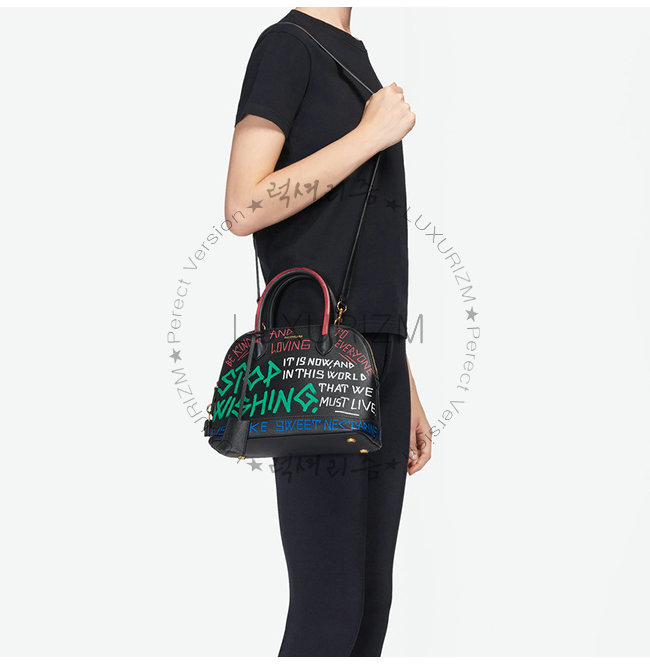그레인드 송아지 가죽 백 그래피티에서 영감을 받은 올오버 프린트 패드락과 키