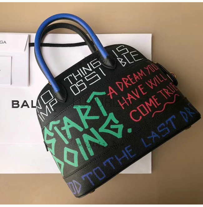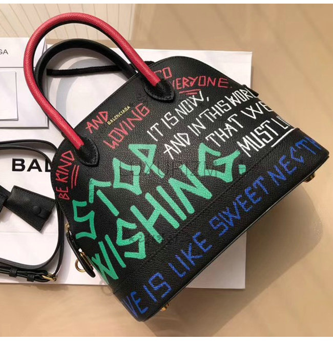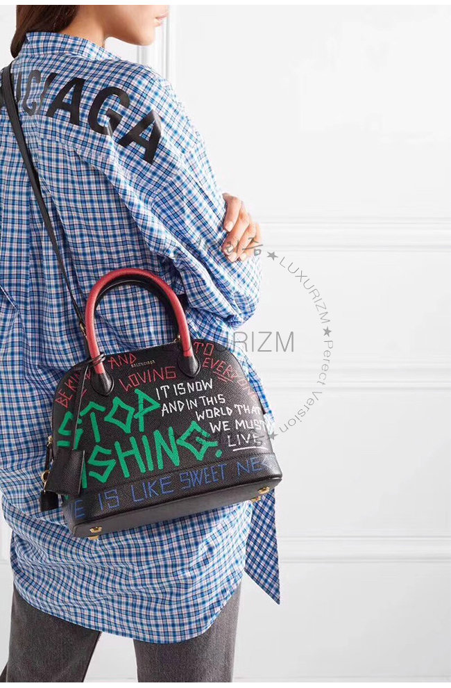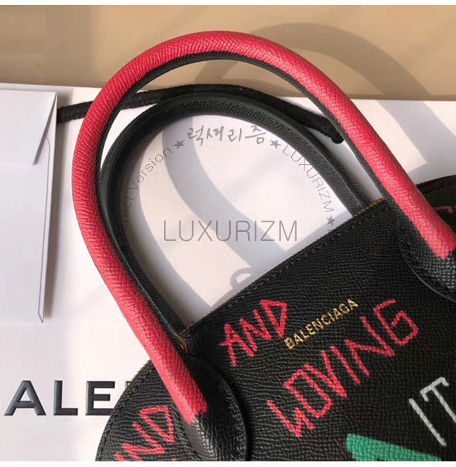 [스페셜오더]BALENCIAGA-518873 발렌시아가 블랙 송아지 가죽 그래피티 빌 탑 핸들백 S