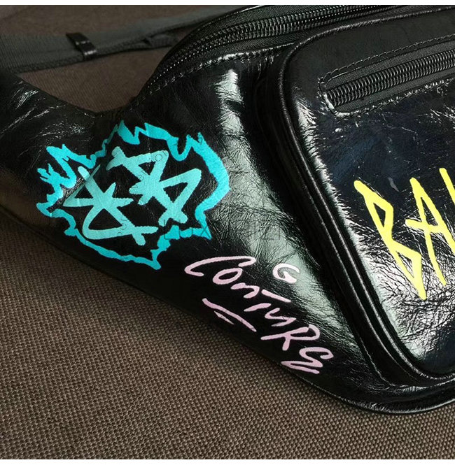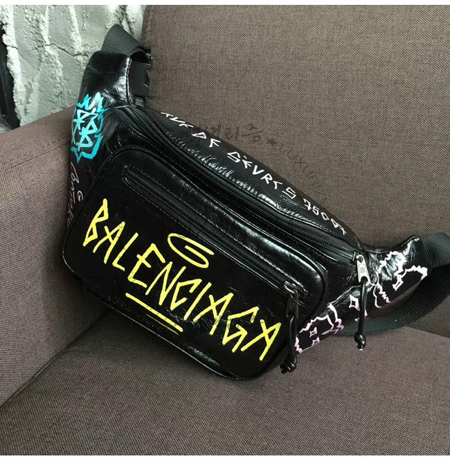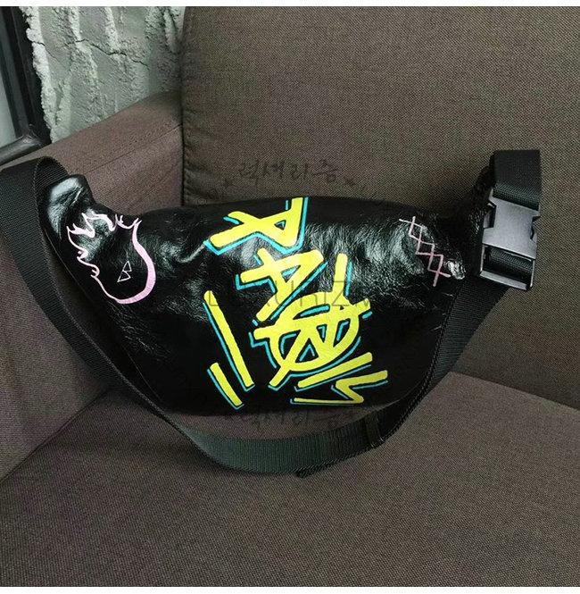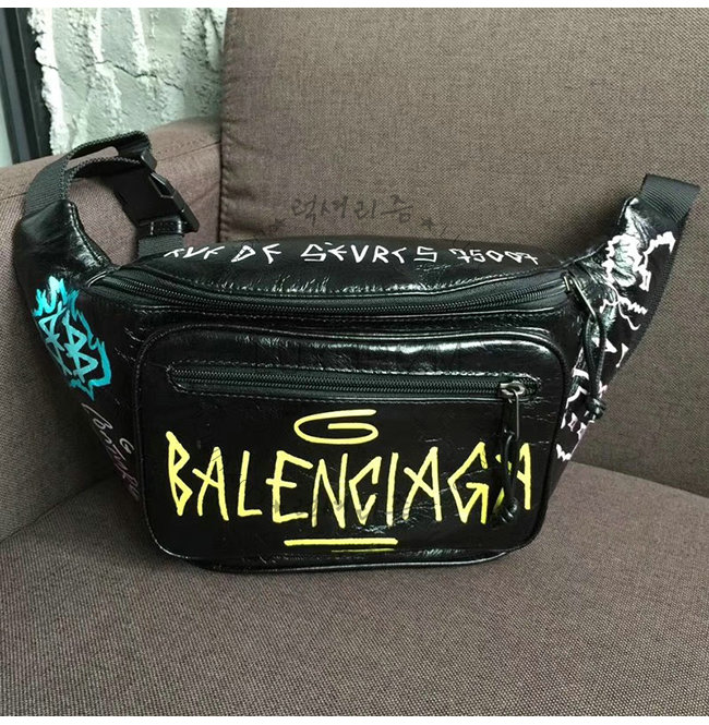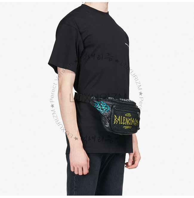 [스페셜오더]BALENCIAGA-529550 발렌시아가 블랙 양가죽 그래피티 익스플로러 벨트팩