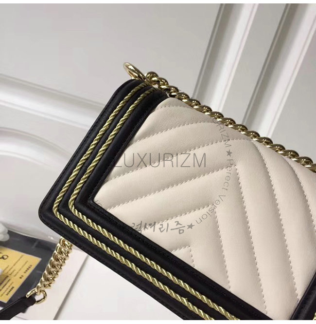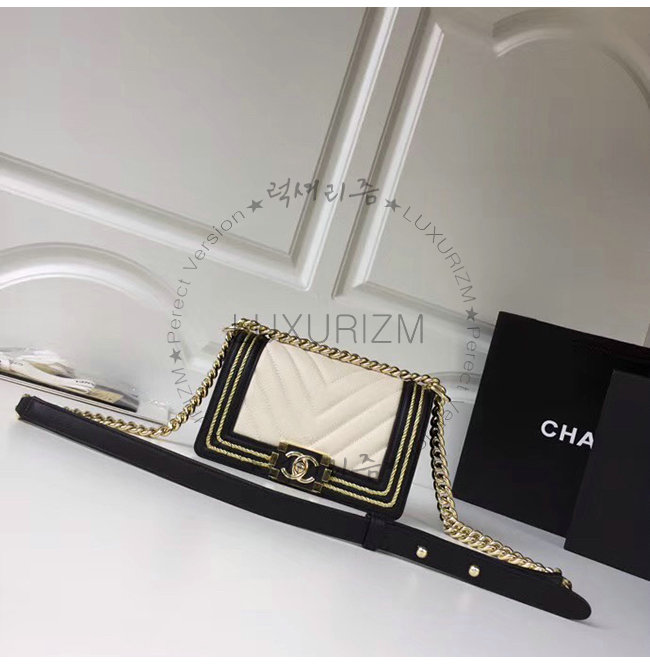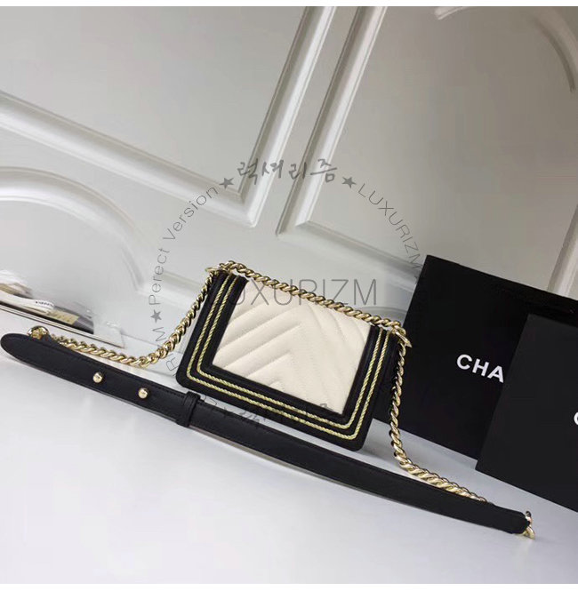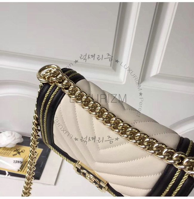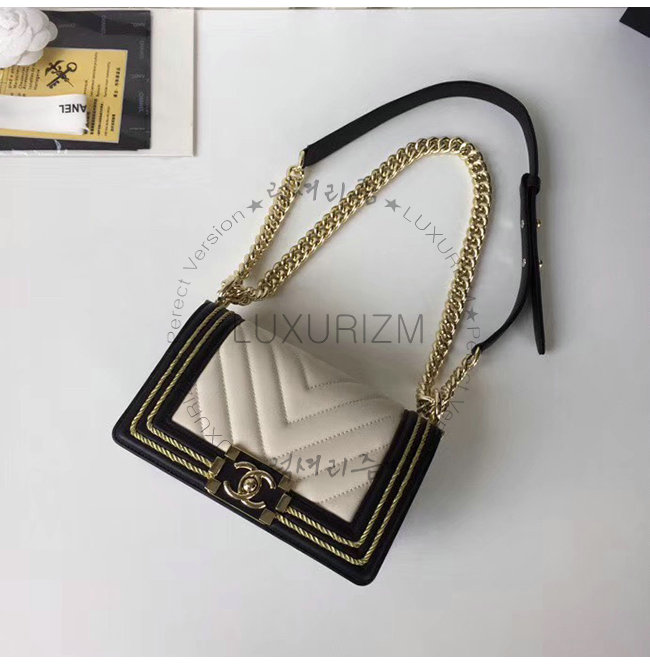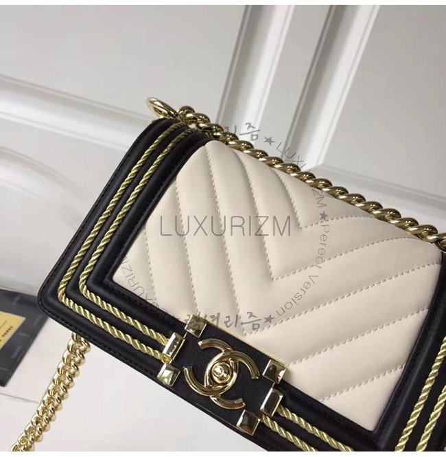 [스페셜오더]CHANEL-A67085 샤넬 화이트 카프스킨 브레이드 골드메탈 보이 샤넬 스몰 플랩백