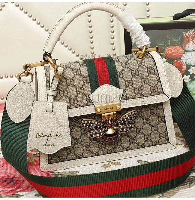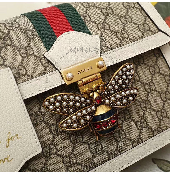 [스페셜오더]GUCCI-476541 9753 구찌 GG 수프림 캔버스 화이트 가죽 Queen Margaret 탑 핸들 백