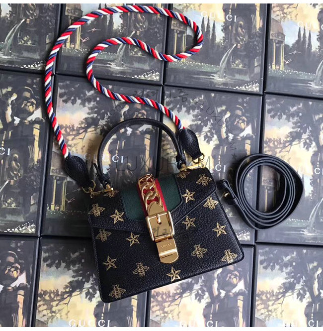 [스페셜오더]GUCCI-470270 8720 구찌 Sylvie 블랙 가죽 크리스탈 장식 미니 백