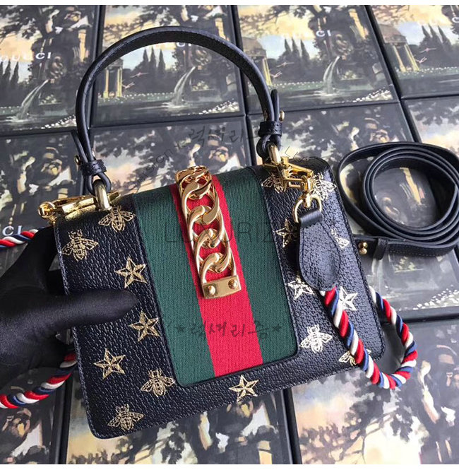[스페셜오더]GUCCI-470270 8015 구찌 Sylvie 실비 미니 Web 디테일 골드 체인,버클 장식 탑 핸들 백 블랙