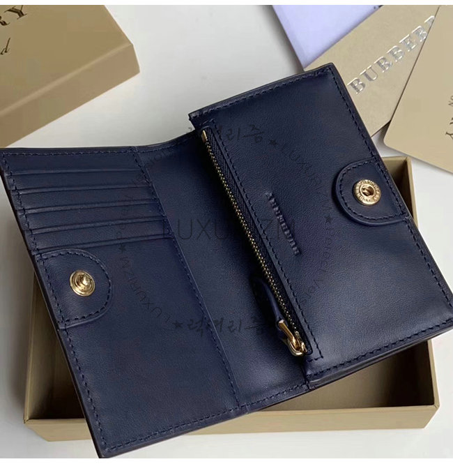 [스페셜오더]BURBERRY-40800881 버버리 네이비 송아지 가죽 스몰 엠보싱 크레스트 투톤 지갑