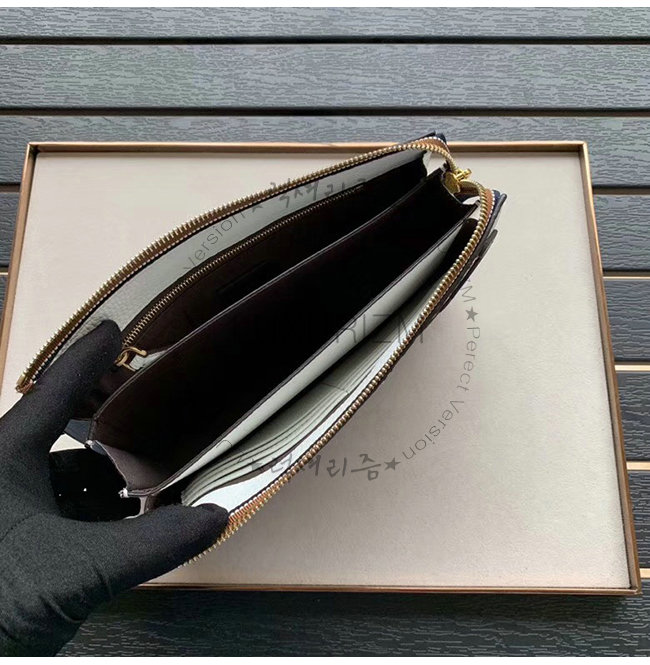 지퍼형 슬림 클러치. 메탈 버튼으로 디자인된 핸드 그립. 카드 슬롯 8개,