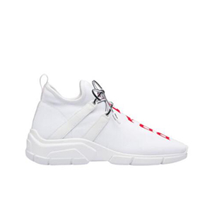 PRADA-1E344L 프라다 화이트 니트 페브릭 인타르시아 로고 스니커즈