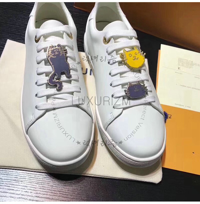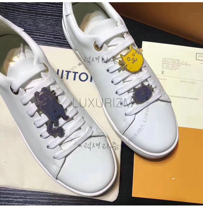 LOUIS VUITTON-1A52EQ 루이비통 화이트 송아지 가죽 슈레이스 액세서리 디테일 프론트로우 스니커즈