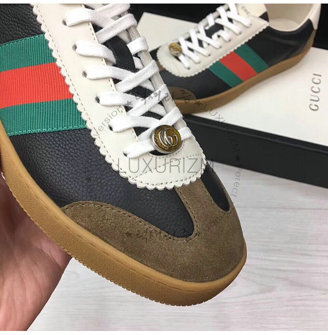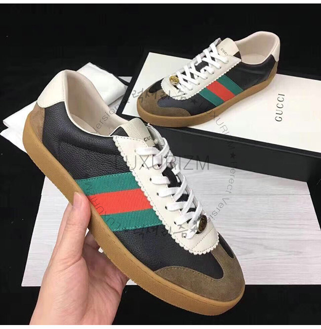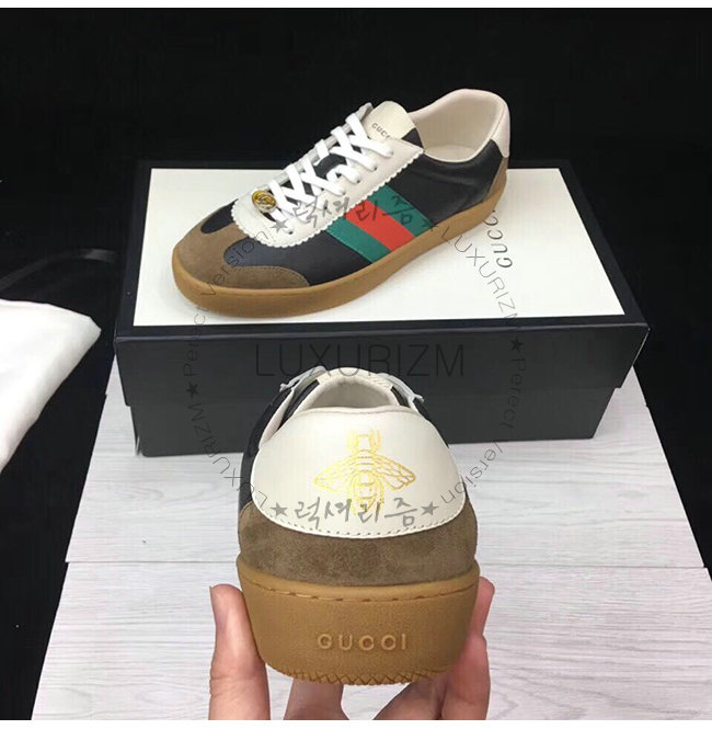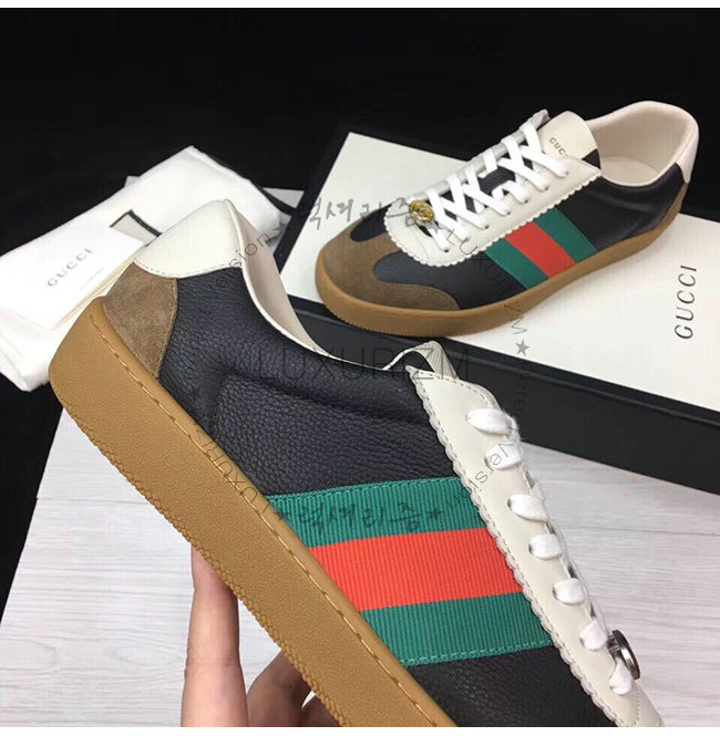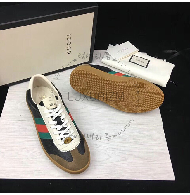[스페셜오더]GUCCI-구찌 18 F/W 구찌 블랙 가죽 스웨이드 웹 로우탑 스니커즈