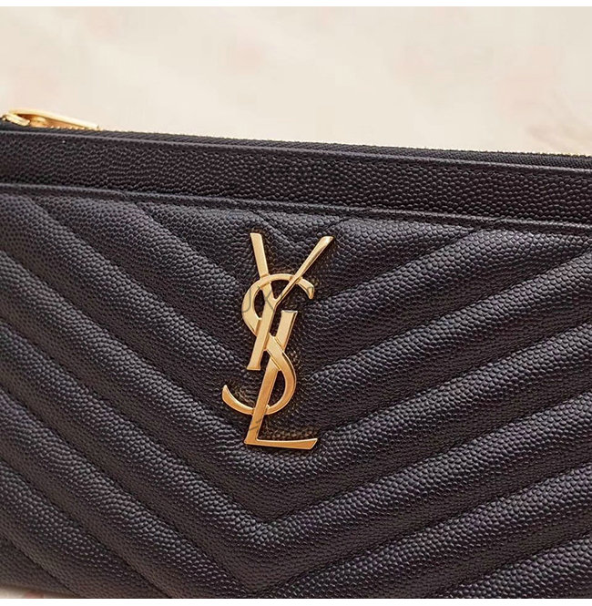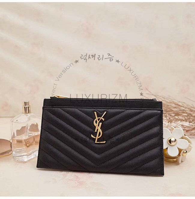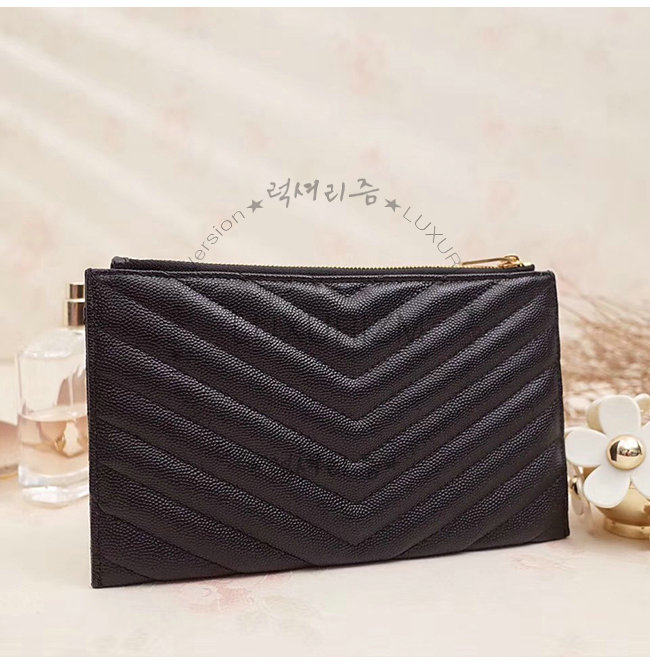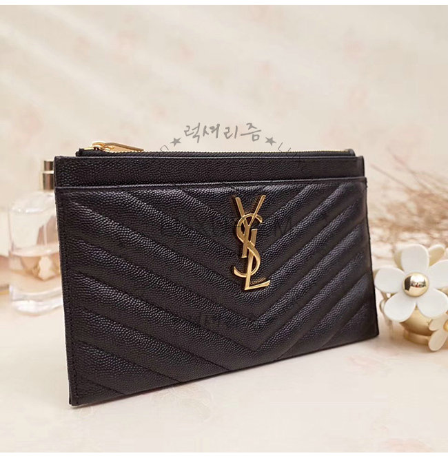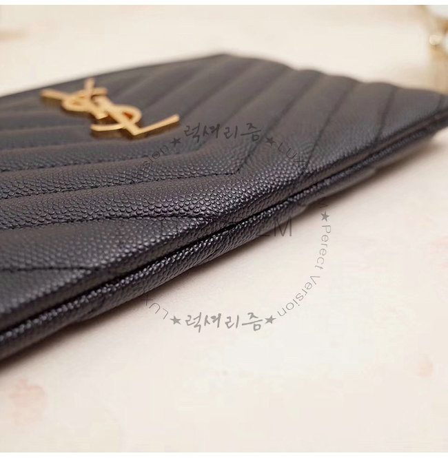 [스페셜오더]SAINT LAURENT-504922 생 로랑 블랙 텍스처드 퀼티드 송아지 가죽 골드메탈 모노그램 클러치