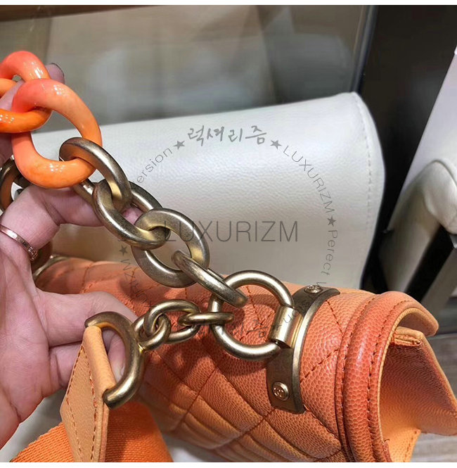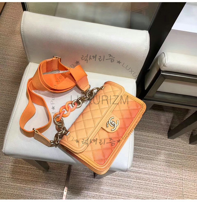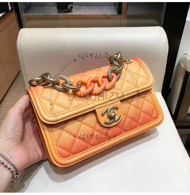 [스페셜오더]CHANEL-AS0061 샤넬 오렌지 그레인드 카프스킨 레진 골드메탈 플랩백