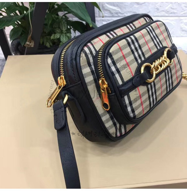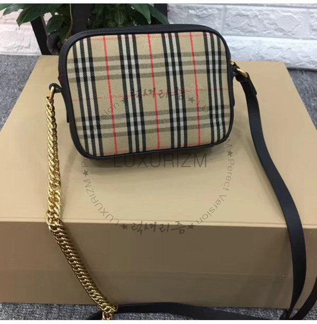 [스페셜오더]BURBERRY-40798811 버버리 블랙 송아지 가죽 1983 체크 링크 카메라백