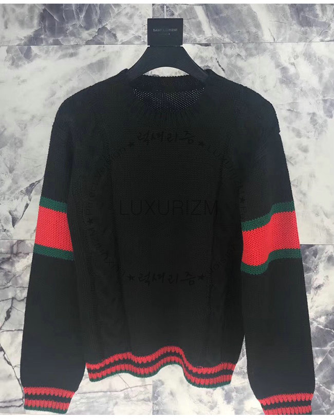 GUCCI-548115 1082 구찌 블랙 니트 울 Web 장식 스웨터