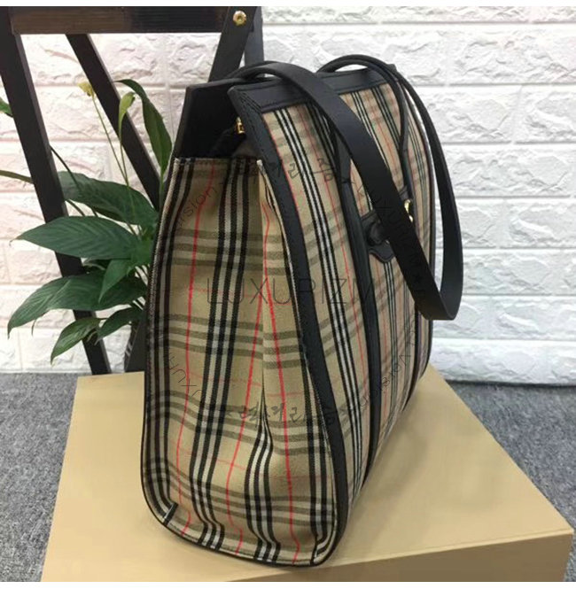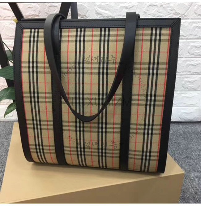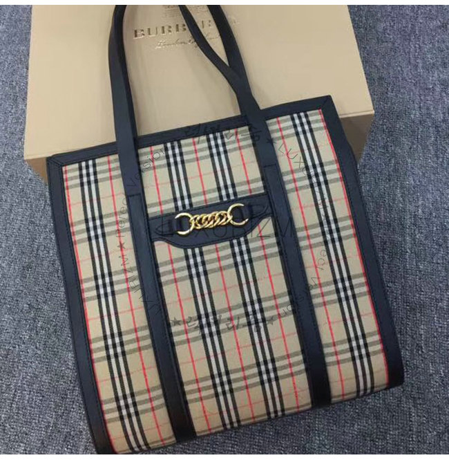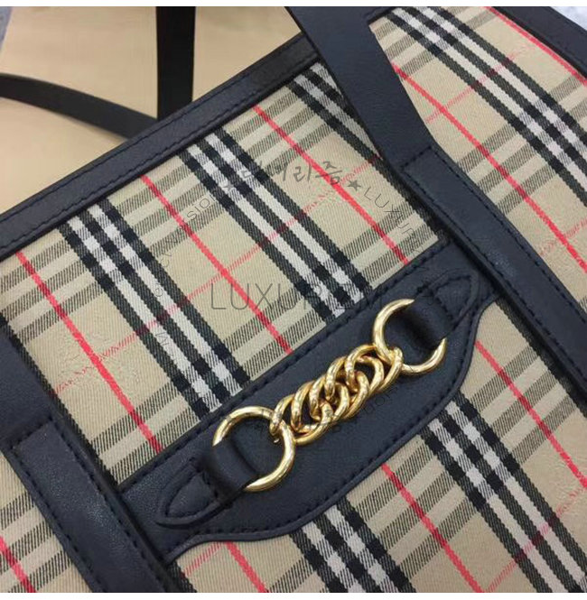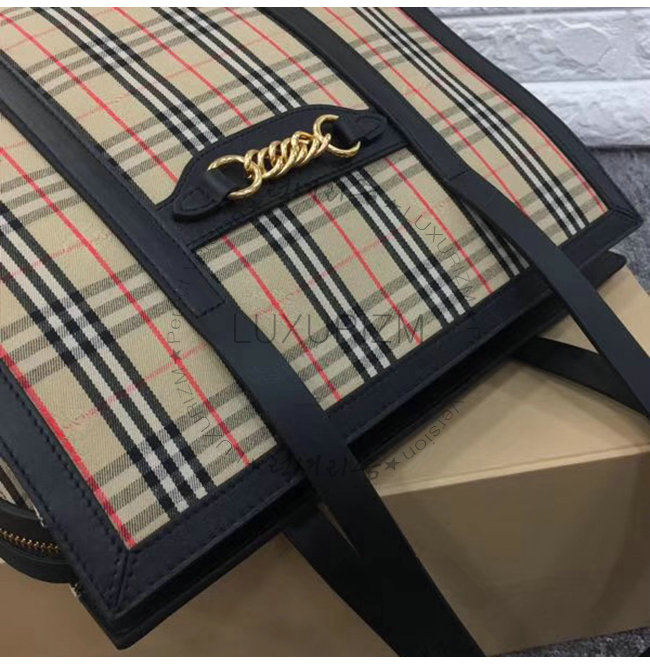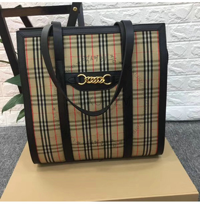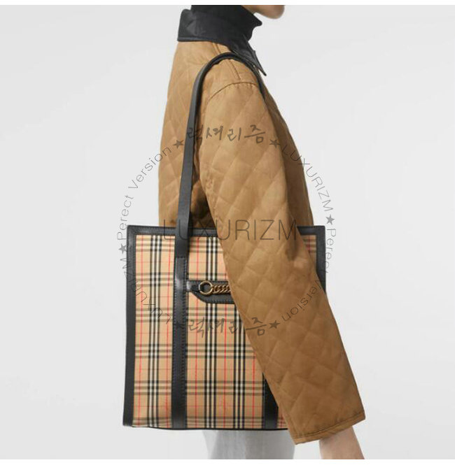 [스페셜오더]BURBERRY-80064371 버버리 스몰 1983 체크 블랙 가죽 링크 토트백